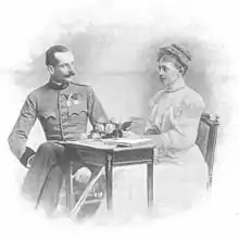 On 20 April 1903, in Vienna, Archduchess Elisabeth Amalie married Prince Aloys of Liechtenstein. There had been some debate as to whether this was an equal union. Emperor Franz Joseph I attended the wedding with the intention of making it clear he regarded Liechtenstein as a legitimate reigning dynasty.[2] As the House of Liechtenstein had become sovereign, the couple were ruled equal in birth, and the Emperor was happy to see a member of his family making a dynastic marriage, after the morganatic marriage of her half-brother Archduke Franz Ferdinand of Austria.[1] Later, the Emperor also became the godfather of the couple's eldest son, Franz Joseph, who was named for him.[3]