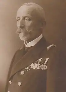 In 1879 Charles Stephen was commissioned as a Seefähnrich in the Austro-Hungarian Navy. Appointed his naval governor in 1879 was Fregattenkapitän (later admiral) Hermann von Spaun, who accompanied him on a voyage to Brazil and North America in the goelette Saida. In 1896 he retired from active duty. He continued, however, to be advanced in rank, attaining the rank of admiral in 1901 and Grossadmiral (grand admiral) in 1911.[2] He was named Marineinspekteur (navy inspector), making him the titular ranking officer of the navy. Others, however, had effective control of operations in 1914–1918; Anton Haus, Maximilian Njegovan and Miklós Horthy each served in turn as Flottenkommandant (Fleet Commander). In 1918 the Emperor Charles I put him in charge of the enquiry into the mutiny of the navy at Cattaro (now Kotor in Montenegro). Charles Stephen recommended a sweeping re-organisation of the navy and the appointment of Miklós Horthy as commander-in-chief.[3]
