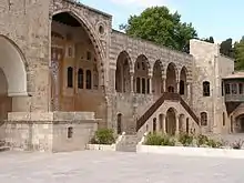 The Beit ed-Dine palace complex was built by Amir Bechir El-Chehab II in the early 19th century. The palace entrance leads through the gates into an open space. This area was originally used for cavalry practices and for celebrations, which were attended by the public, visitors and important people of that time. The palace complex is now a museum with pictures, transcripts and documents including a collection of ancient pottery. It also contains a collection of Romanian gold jewelry, Islamic glazed wares, ethnographic objects, and ancient and modern weapons.[9]