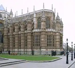 The highly ornate fan vaulting of the Henry VII Chapel of Westminster Abbey (1509).