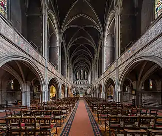 London's other most significant church Westminster Abbey was first constructed in the reign of Edward the Confessor in the Romanesque style but was subsequently rebuilt in the Gothic style in the 13th century in the reign of Henry III; this produced the building which largely survives today. The sophisticated Gothic architecture of the abbey is reminiscent of French Cathedrals like that of Reims rather than the English Gothic of the period, leading to much speculation as to whether the master mason was French.[21] The most significant later addition to the abbey was the Henry VII Chapel built in the late 15th to early 16th century, an exceptional example of late English Gothic architecture notable for its highly ornate fan vaulted ceiling. The twin-towered west front of the abbey was added in the 18th century to the designs of Nicholas Hawksmoor in a faithful Neo-Gothic style intended to be in keeping with the rest of the medieval building. Other significant Gothic churches surviving from the Middle Ages include Southwark Cathedral, a former priory that was the first gothic church in London built between 1220 and 1420, as well as a handful of city churches that miraculously survived the great fire like St Andrew Undershaft, St Helen's Bishopsgate, St Olave's Hart Street and St Sepulchre-without-Newgate.