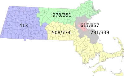 - Massachusetts Area Code Map, Mass. Department of Telecommunications and Cable