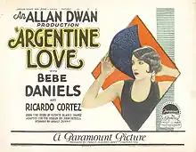Argentine Love is a lost[1] 1924 American silent romance drama film directed by Allan Dwan and based on a story by Vicente Blasco Ibanez that stars Bebe Daniels.[2][3]