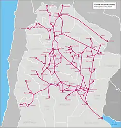 | La Rioja Catamarca Córdoba Tucumán Formosa Chaco Santiago del Estero Salta | Córdoba - La Rioja (via Cruz del Eje) Chumbicha - Catamarca Deán Funes - Laguna Paiva Córdoba - La Puerta Serrezuela - San Juan - Formosa - Embarcación Sáenz Peña - Metán Tucumán - Santa Fe Quimilí - Barranqueras | 1,000 | 7,500 | ||
