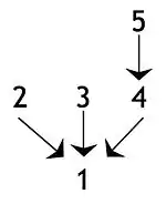 Intermediate conclusions or sub-conclusions, where a claim is supported by another claim that is used in turn to support some further claim, i.e. the final conclusion or another intermediate conclusion: In the following diagram, statement 4 is an intermediate conclusion in that it is a conclusion in relation to statement 5 but is a premise in relation to the final conclusion, i.e. statement 1. An argument with this structure is sometimes called a complex argument. If there is a single chain of claims containing at least one intermediate conclusion, the argument is sometimes described as a serial argument or a chain argument.[11]