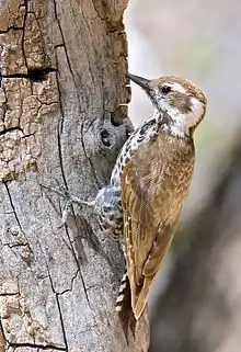 The Arizona woodpecker (Leuconotopicus arizonae) is a woodpecker native to southern Arizona and New Mexico and the Sierra Madre Occidental of western Mexico. The species northernmost range in southeastern Arizona, extreme southwestern New Mexico, and northern Sonora is the region of the Madrean Sky Islands, a region of higher Sonoran Desert mountain ranges.
