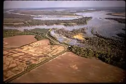 Two different eco-regions border the Grand Prairie along the major rivers forming the county's east and southern boundaries: the Arkansas River Holocene Meander Belt and the Western Lowlands Holocene Meanders. These areas of flat floodplain contain the meander belts of the present and past watercourses, point bars, natural levees, swales, and abandoned river channels. Some of the most extensive remaining tracts of native bottomland hardwood forest in the Mississippi Alluvial Plain remain along these rivers. Along the banks of the White River in Arkansas County, these forests are preserved in the White River National Wildlife Refuge.[12]