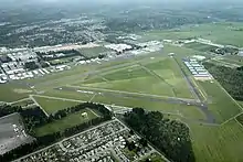 In the 1990s, the airport was selected by the Puget Sound Regional Council as a candidate for expansion into a regional airport to relieve Seattle–Tacoma International Airport.[8] The council decided instead to construct a third runway at Sea-Tac in 1996,[9] leaving Arlington to redevelop its airport for general aviation. A 124-acre (50 ha) business park was created on the west side of the airport in 2002 and include soffices, hangars, and light manufacturing.[10] In 2019, the city began lobbying for a 677-foot (206 m) runway extension to support larger airplanes and anticipated growth.[7]