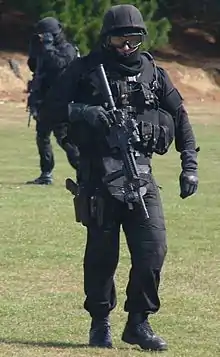 As of 2012, there are 17 squads throughout New Zealand covering all major population centres, with a total strength of around 320 members.[1][2] Members are part-time, come from all branches of the New Zealand Police such as the Criminal Investigation Branch (CIB) or general duties, and operate on a call out basis. In the event of an incident requiring AOS attendance, the on-duty officers will be paged by the communications centre.[21] They then assemble at their base, to draw arms and get other equipment, before responding to the scene.[21]