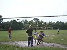 At the center of the community is an adult soccer field that is located at 15 43’ 42”N x 86 51’ 36” W and sits 22 meters above sea level.[1] Its climate is tropical. The roads are dirt covered with river rock. It is located inside Pico Bonito National Park (PBNP).[2] Golosón International Airport (LCE) is less than 1.6 km (1 mi) from Armenio Bonito.[3]