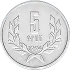 In 1994, a first series of aluminium coins was introduced in denominations of 10, 20 and 50 luma, 1, 3, 5 and 10 dram. The other coins are officially in circulation but rarely used because of their low nominal value.[7][8]