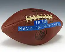 In 1963, shortly after the assassination of President John F. Kennedy, Jacqueline Kennedy urged the academies to play after there had been talk of cancellation. Originally scheduled for November 30, 1963, the game was played on December 7, 1963, also coinciding with the 22nd anniversary of Pearl Harbor Day.[13] In front of a crowd of 102,000 people in Philadelphia's Municipal Stadium, later renamed John F. Kennedy Stadium, junior (second class Midshipman) quarterback Roger Staubach led number two ranked Navy to victory which clinched a Cotton Bowl national championship matchup with Texas. Army was led by junior (second class Cadet) quarterback Rollie Stichweh. Stichweh led off the game with a touchdown drive that featured the first use of instant replay on television. Army nearly won the game after another touchdown and two point conversion, Stichweh recovered the onside kick and drove the ball to the Navy 2 yard line. On 4th down and no timeouts, crowd noise prevented Stichweh from calling a play and time expired with the 21–15 final score. Staubach won the Heisman Trophy that year and was bumped off the scheduled cover of Life magazine due to the coverage of the assassination. Stichweh and Staubach would meet again in 1964 as seniors where Stichweh's Army would defeat Staubach's Navy. In that game, Calvin Huey of Navy became the first African-American to play in the series.[14] Staubach went on to serve in the Navy and afterward became a Pro Football Hall of Fame quarterback with the Dallas Cowboys. Stichweh served five years in Vietnam with the 173rd Airborne Brigade. Stichweh was inducted into the Army Sports Hall of Fame in 2012.[15][16]