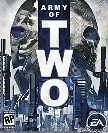 Army of Two is a third-person shooter video game developed and published by Electronic Arts, released on March 6, 2008 for the Xbox 360 and PlayStation 3 consoles. The game is centered upon two mercenaries fighting through war, political turmoil, and a conspiracy from 1993 to 2009. Focusing on cooperative strategies, Army of Two's main feature is the necessity to use coordinated teamwork to accomplish the game's goals. While the game is meant to be played with another human as a partner, a "Partner Artificial Intelligence" (PAI) is also included and programmed to follow the player's strategies. Dependence on a partner (whether human or PAI) is so pronounced that most objectives are impossible to complete without it.