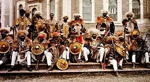 ![]() Ethiopian reenactors pictured at St. George's Cathedral in Addis Ababa ahead of the 123rd anniversary of the Battle of Adwa | |