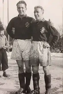 ![]() AIK-Birmingham City FC, 1-2. Arne Andersson dueling with Wilson Jones. Aftonbladet's picture of the year in 1946. | |||