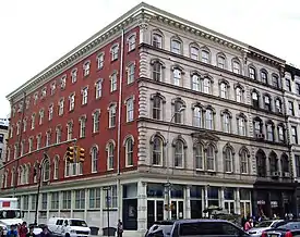 The second Arnold Constable flagship store now located in the Ladies' Mile Historic District began as the second of two twin buildings with marble facades, both designed by architect Griffith Thomas in Second Empire Commercial style,[12] the other being for the retailer Edward Hoyt, who moved uptown to the area at about the same time as Arnold Constable.[3] Later alterations to the buildings have obscured their identical beginning.[13]