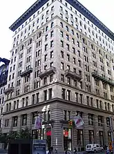 ![]() The upper floors of the Broadway facade of the "Palace of Trade", showing the mansard roof | |