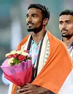 Subedar Arokia Rajiv (born 22 May 1991) is an Indian sprinter and a Junior Commissioned Officer (JCO) in Indian Army who specialises in the 400 metres distance. He won silver medals in the men's and mixed 4 × 400 m relays at the 2018 Asian Games and placed third in the individual 400 m in 2014. He won medals in both the 400 m and 4 × 400 m events at the 2016 South Asian Games and 2017 Asian Championships. He competed in the relay at the 2016 Summer Olympics.[2]