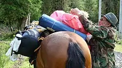 A muleteer, or more informally a muleskinner[1] (Spanish: arriero; Portuguese: tropeiro; Catalan: traginer) is a person who transports goods using pack animals, especially mules. In South America, muleskinners transport coffee, maize (corn), cork, wheat and myriad other items. They used to be common in the Paisa Region (Antioquia and the Colombian Coffee-Growers Axis) of Colombia but were replaced in the 1950's by tractor trailers called locally "tractomulas" paying homage to the mules that used to do this hard job. In California, muleteers work out of pack stations. In Europe, there are still muleteers in the south of Portugal and the southwest of Spain, in the cork producing area. Their role is now limited to transporting the cork with their mules, out of the Mediterranean oak forest to more accessible routes, where modern means of transport are available.