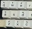 Arrow keys or cursor movement keys are buttons on a computer keyboard that are either programmed or designated to move the cursor in a specified direction.[1] The term "cursor movement key" is distinct from "arrow key" in that the former term may refer to any of various keys on a computer keyboard designated for cursor movement, whereas "arrow keys" generally refers to one of four specific keys, typically marked with arrows.[2]
