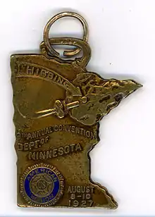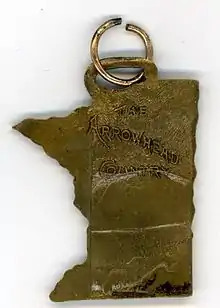 The term "The Arrowhead Country" appeared on a medal for the American Legion's 9th Annual Convention in Minnesota, taking place from August 8–10, 1927 in Hibbing. The reverse reads "The Arrowhead Country". The medal, made of a cupreous metal, is in the shape of Minnesota with a Native American style projectile point ("Arrowhead") covering the northeastern portion of the state.