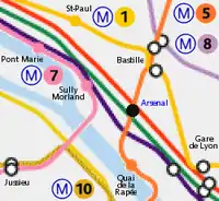 Arsenal is a ghost station on the Paris métro, situated on line 5 between the stations of Bastille and Quai de la Rapée, in the 4th arrondissement of Paris.