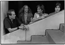 The band was the first-known rock band featuring a pedal harp to appear on a major record label. Art in America was formed in 1980 by brothers Chris Flynn and Dan Flynn and sister Shishonee (real name Ruetenik). Harpist Shishonee, was formerly a member of the band The Trees Community.[2] Joining Art in America was friend Jim Kuha. Originally called Father, the band's name was changed to 'Art in America' and under this name the group began opening for popular English pop artists such as U2 and Roxy Music. In 1983, the group released their first studio album under Sony Music/Pavilion Records.[3] Produced by Yes and Emerson, Lake and Palmer producer Eddy Offord, the album contained their most popular song "Art in America"[4][5] which received airplay on MTV music television, and radio stations throughout the United States. The songs were co-arranged by Stephen Steve Morse who also contributed a guitar solo for the song "Undercover Lover". The guest keyboardist on the album was Terry "T" Lavitz.[6]