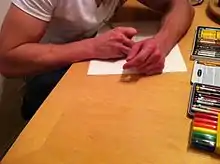 The term containment, within art therapy and other therapeutic settings, has been used to describe what the client can experience within the safety and privacy of a trusting relationship between client and counselor.[51][52] This term has also been equated, within art therapy research, with the holding or confining of an issue within the boundaries of visual expression, like a border or the circumference of a mandala.[53] The creation of mandalas for symptom regulation is not a new approach within the field of art therapy, and numerous studies have been conducted in order to assess their efficacy.[54][55]