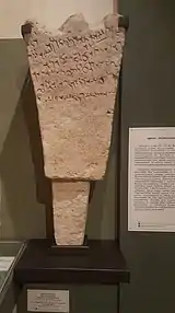 According to the Greek geographer Strabo, Artaxias and Zariadres were Macedonian generals of the Seleucid king Antiochus III the Great (r. 222 – 187 BC).[4] He adds that after Antiochus III's defeat by the Romans in 188 BC, the two generals established themselves a kingdom in Greater Armenia.[4] However, this statement has been dismissed by the recent discovery of boundary stones with Aramaic engravings in Armenia, which mentions Artaxias' proclamation of being "the son of Zareh (Zariadres)" and an "Eruandid (Orontid) king".[4]