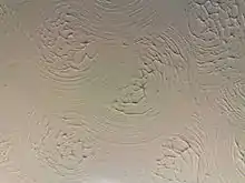 Artex differs from plaster in that it was marketed as a material intended to receive a textured finish, thus enabling a ceiling to be finished without plastering skills. It was very widely used in Britain in the 1970s, mainly with the familiar stippled and swirled patterns. Artex was also occasionally used on walls.[2]