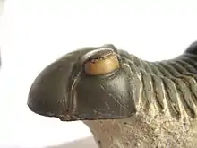 The eyes of trilobites came in three forms. The holochroal eye, the most common and most primitive, consisted of many small lenses, between 100-15000, covered by a single corneal membrane. This was the most ancient kind of eye. This eye morphology was found in the Cambrian trilobites (the earliest) and survived until the Permian extinction.[17]