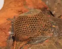 No fossil organisms have been identified as similar to the last common ancestor of arthropods; hence the eyes possessed by the first arthropod remains a matter of conjecture. The largest clue into their appearance comes from the onychophorans: a stem group lineage that diverged soon before the first true arthropods. The eyes of these creatures are attached to the brain using nerves which enter into the centre of the brain, and there is only one area of the brain devoted to vision. This is similar to the wiring of the median ocelli (small simple eyes) possessed by many arthropods; the eyes also follow a similar pathway through the early development of organisms. This suggests that onychophoran eyes are derived from simple ocelli, and the absence of other eye structures implies that the ancestral arthropod lacked compound eyes, and only used median ocelli to sense light and dark.[3] However, a conflicting view notes that compound eyes appeared in many early arthropods, including the trilobites and eurypterids, suggesting that the compound eye may have developed after the onychophoran and arthropod lineages split, but before the radiation of arthropods.[15] This view is supported if a stem-arthropod position is supported for compound-eye bearing Cambrian organisms such as the Anomalocaridids. An alternative, however, is that compound eyes evolved multiple times among the arthropods.[16]