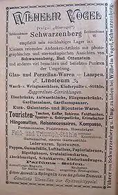 Wilhelm Arthur Vogel (2 April 1868 – 4 March 1962) was a German merchant, photographer and publisher of Ore Mountain picture postcards which form an important part of the heritage of the Ore Mountains.