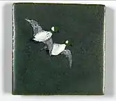 C.F.A. Voysey (1857–1941) was an Arts and Crafts architect who also designed fabrics, tiles, ceramics, furniture and metalwork. His style combined simplicity with sophistication. His wallpapers and textiles, featuring stylised bird and plant forms in bold outlines with flat colors, were used widely.[15]