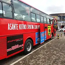 Whereas one of the training pitches will go to the Asante Kotoko reserve and youth squad; the remaining two other training pitches will be used by the Asante Kotoko professional senior squad.[19] The Asante Kotoko executive board committee revealed that 10 percent of contributions to the Asante Kotoko development project fund would be used to fund the "Asante Kotoko Adako-Jachie Training Complex" and mega training facility.[19] The Asante Kotoko executive board intimated that the Asante Kotoko Owner and Life Patron of Asante Kotoko, Asantehene King Otumfuo Osei Tutu II of the Ashanti nation is to provide both financial and moral support to the "Asante Kotoko Adako-Jachie Training Complex" and mega training facility construction project.[19] The Asante Kotoko squad players are driven from the Asante Kotoko stadium on the Asante Kotoko squad coach (bus) manufactured by Tata Motors of conglomerate Tata Group to the training headquarters of Asante Kotoko.[20]