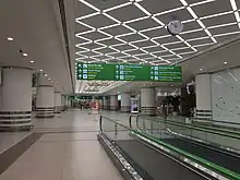On 26 March 2014, a small passenger terminal was opened during a ceremony attended by President Gurbanguly Berdimuhamedow.[5] The terminal is located on the site of a pre-existing Turkmen SSR airport (after the bus station) down the street No.2013 (Cosmonaut Blvd). For the period of construction of the main passenger terminal the temporary terminal took the service of passengers departing and arriving to Ashgabat. After commissioning of the main terminal, the terminal is used for charter flights.[6]