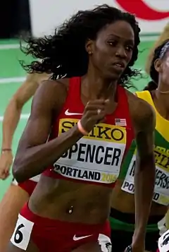 Ashley Spencer (born June 8, 1993) is an American track and field athlete who competes in the 400 metres and the 400 metres hurdles. In the 400m hurdles, she is the 2016 Olympic bronze medalist. In the 400m, she is the 2012 World Junior Champion and the 2016 World Indoor silver medalist. She is coached by 1996 Olympic bronze medalist Tonya Buford-Bailey.