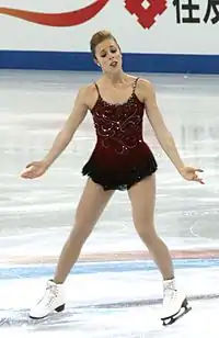 In January 2008, Wagner competed on the senior level for the first time at the 2008 U.S. Nationals in St. Paul, Minnesota. She placed second in the short program behind Mirai Nagasu after landing a triple Lutz-triple loop combination.[25][26] In the free skate, she placed second again, this time behind Rachael Flatt, after landing seven triples including another triple Lutz-triple loop combination. She finished with the bronze medal overall behind Nagasu and Flatt. Because Nagasu, Flatt, and pewter-medalist Caroline Zhang were too young to compete at an ISU Senior Championship event, Wagner was the only medal winner to be named to the Four Continents and World Championships teams.[27] Because of her third-place finish at the 2008 Nationals, Wagner earned a bye to the 2009 U.S. Nationals.