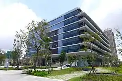 Construction on the Kaohsiung Exhibition Center began in October 2011, and on October 18, 2013, the finished building was opened. The first fair held here was the "Taiwan International Fastener Show" on April 14, 2014.[5][6] In the immediate vicinity of the center, there is the modern high-rise building with the headquarters of China Steel Corporation.