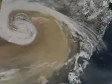 The Indian Ocean brown cloud or Asian brown cloud is a layer of air pollution that recurrently covers parts of South Asia, namely the northern Indian Ocean, India, and Pakistan.[1][2] Viewed from satellite photos, the cloud appears as a giant brown stain hanging in the air over much of South Asia and the Indian Ocean every year between January and March, possibly also during earlier and later months. The term was coined in reports from the UNEP Indian Ocean Experiment (INDOEX).[3]