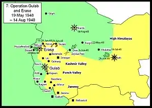 Brigadier Muhammad Aslam Khan (1918–1994[1]) was a Pakistani military officer, who led the Gilgit Scouts and Azad rebels in the First Kashmir War. Using the nom de guerre of 'Colonel Pasha', he organised a force of 1200 rebels and local recruits in Gilgit, and led an attack on the Indian Army and the State Forces from the north, conquering Skardu and Kargil and advancing within 30 miles of Leh.[2] Even though the Indian Army eventually repulsed the attack beyond Kargil, Skardu remained part of the rebel territory, coming under Pakistani control at the end of the war.