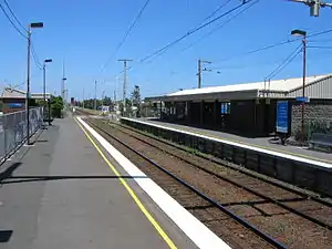 Aspendale railway station is located on the Frankston line in Victoria, Australia. It serves the south-eastern Melbourne suburb of Aspendale, opening in April 1891 as Aspendale Park Racecourse, and was renamed Aspendale on 1 August 1905.[1]