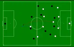 Football coaches and technical manuals such as Soccer Skills and tactics,[7] and The Soccer Coaching Bible,[8] often use visual symbols and diagrams to demonstrate the principles described above, and to link principles to historical games. The following examples combine technical coaching observations with championship play descriptions at the World Cup level as in Brian Glanville's World Cup, (1994).[9] The written descriptions are diagrammed for the reader to better understand various football tactics and skills as they are applied in the real world, at the highest levels.
