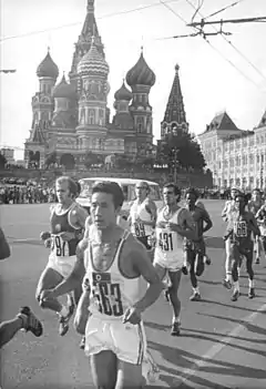 The men's marathon at the 1980 Summer Olympics in Moscow, USSR had an entry list of 76 competitors, with 74 athletes from 40 nations starting and 53 runners finishing the race held on Friday 1 August 1980.[1] The maximum number of athletes per nation had been set at 3 since the 1930 Olympic Congress. The event was won by Waldemar Cierpinski of East Germany, the second man to successfully defend Olympic gold in the marathon (after Abebe Bikila in 1960 and 1964). Both the Netherlands (Gerard Nijboer's silver) and the Soviet Union (Satymkul Dzhumanazarov's bronze) won their first men's Olympic marathon medals.