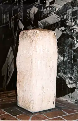 The Atlanta Zero Mile Post is a stone marker which marked the terminus of the Western and Atlantic Railroad in Atlanta. It was located in a disused building in Downtown Atlanta, within the Underground Atlanta Historic District, under the Central Ave. viaduct, between Alabama and Wall streets.[2][3] The Zero Mile Post was recognized with a historical marker by the Georgia Historical Commission in 1958[4] and entered into the National Register of Historic Places in 1977.[5] It was delisted in 2019.