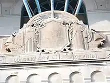 During this time, Atlantic City was led by mayor Edward L. Bader, known for his contributions to the construction, athletics and aviation of Atlantic City.[41] Despite opposition, he had Atlantic City purchase the land that became the city's municipal airport and high school football stadium, both of which were later named Bader Field in his honor.[42] He led the initiative, in 1923, to construct the Atlantic City High School at Albany and Atlantic Avenues.[41] Bader, in November 1923, initiated a public referendum, during the general election, at which time residents approved the construction of a Convention Center. The city passed an ordinance approving a bond issue for $1.5 million to be used for the purchase of land for Convention Hall, now known as the Boardwalk Hall, finalized September 30, 1924.[43] Bader was also a driving force behind the creation of the Miss America competition.[44]