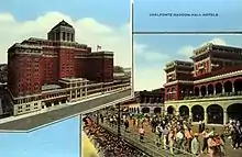 One by one, additional large hotels were constructed along the boardwalk, including the Brighton, Chelsea, Shelburne, Ambassador, Ritz Carlton, Mayflower, Madison House, and the Breakers. The Quaker-owned Chalfonte House, opened in 1868, and Haddon House, opened in 1869, flanked North Carolina Avenue at the beach end. Over the years, their original wood-frame structures would be enlarged, and even moved closer to the beach. The modern Chalfonte Hotel, eight stories tall, opened in 1904. The modern Haddon Hall was built in stages and was completed in 1929, at eleven stories. By this time, they were under the same ownership and merged into the Chalfonte-Haddon Hall Hotel, becoming the city's largest hotel with nearly 1,000 rooms. By 1930, the Claridge, the city's last large hotel before the casinos, opened its doors. The 400-room Claridge was built by a partnership that included renowned Philadelphia contractor John McShain. At 24 stories, it would become known as the "Skyscraper by the Sea." The city became known as "The World's Playground".[35][36]
