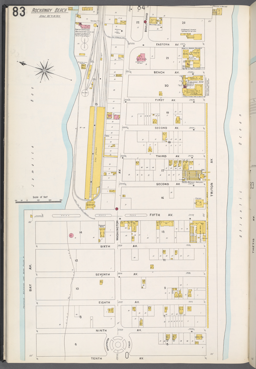 The station opened in May 1875. [2] It closed sometime before 1929[3] (if its placement was near Edgemere) or 1901 [4] (if its placement was past Neptune House.) [5]