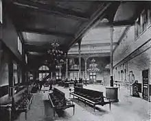 Between 1904 and 1906, the Carlton Avenue Freight Yards were replaced by the Vanderbilt Avenue Freight Yards. This was just a portion of a major improvement project that included the complete reconstruction of the station. The second depot opened on April 1, 1907 with the depot at street level and the tracks installed underground. The station had a lobby that was larger than most LIRR stations, and contained subway type entrances to the tracks.[4] It also served as a post office building until 1925,[5] and contained a baggage depot, express buildings, some meat houses which were inherited from the previous version of the station, and a merchandise terminal for "less than carload freight" added on in 1908. The Interborough Rapid Transit Company built a subway line called the Eastern Parkway Line and a station on Atlantic Avenue, that connected to the station on May 1, 1908. The BMT also built two more subway lines on Pacific Street along the Fourth Avenue Line on June 22, 1915, and Atlantic Avenue along the Brighton Line on August 1, 1920. The connection to the BMT Fifth Avenue Line was lost on May 31, 1940.[6]