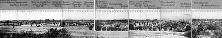 The battle caused one of the greatest numbers of Australian deaths in action in 24 hours, surpassed only at the Battle of Bullecourt in 1917.[43][lower-alpha 8] The 5th Australian Division suffered 5,513 casualties, 2,000 men in the 8th Australian Brigade, 1,776 men of the 15th Australian Brigade, 1,717 men in the 14th Australian Brigade and 88 men from the divisional engineers. Two battalions had so many casualties that they had to be rebuilt. Of 887 personnel from the 60th Australian Battalion, only one officer and 106 other ranks survived unwounded and the 32nd Australian Battalion suffered 718 casualties. The 31st Australian Battalion had 544 casualties and the 32nd Australian Battalion lost 718 men killed and wounded.[44] The 61st (2nd South Midland) Division was understrength before the battle and contributed only half as many men as the 5th Australian Division and suffered 1,547 casualties. The 6th Bavarian Reserve Division suffered casualties of 1,600 to 2,000 men.[22] Australian and British soldiers killed in the area that was re-taken by the Germans, were buried shortly after the battle. The burial pits were photographed from a British reconnaissance aircraft on 21 July but marked as dugouts or trench-mortar positions. On 22 July, the bodies were taken by narrow gauge trench railway and buried in eight 10 by 2.2 by 5 m (30 by 7 by 20 ft) pits.[45]